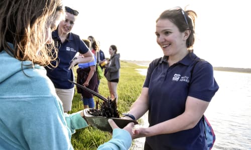 Mystic Aquarium collaborates with individuals and organizations that share our vision of having a strong and lasting impact on ocean research and conservation. The distinct strengths of these partners, combined with Mystic Aquarium’s expertise, expands our reach and capabilities. Our most notable research partner is the University of Connecticut (UConn). Mystic Aquarium’s state-of-the-art research laboratories are located at the UConn’s Avery Point campus which is dedicated to Marine Science and Maritime studies. Mystic Aquarium scientists have appointments in the Department of Marine Science and teach undergraduate and graduate students both in the classroom and in the laboratory.